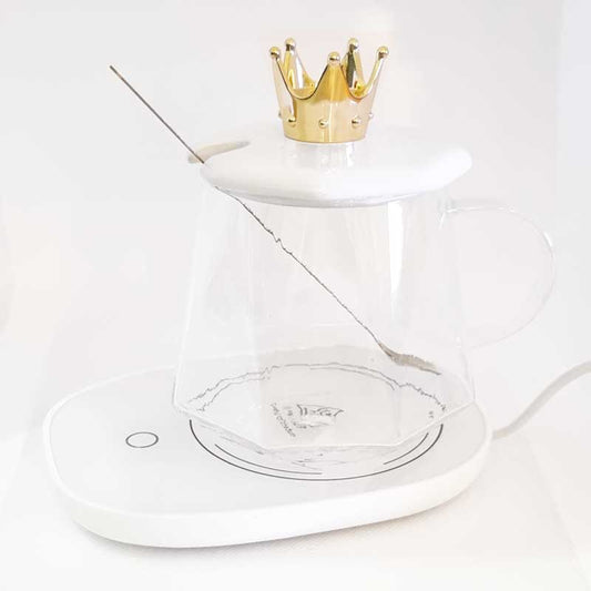 פלטת חימום לכוס קפה עם כוס זכוכית מעוצבת
