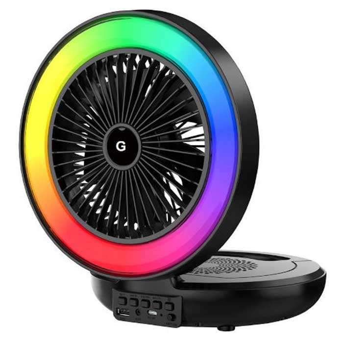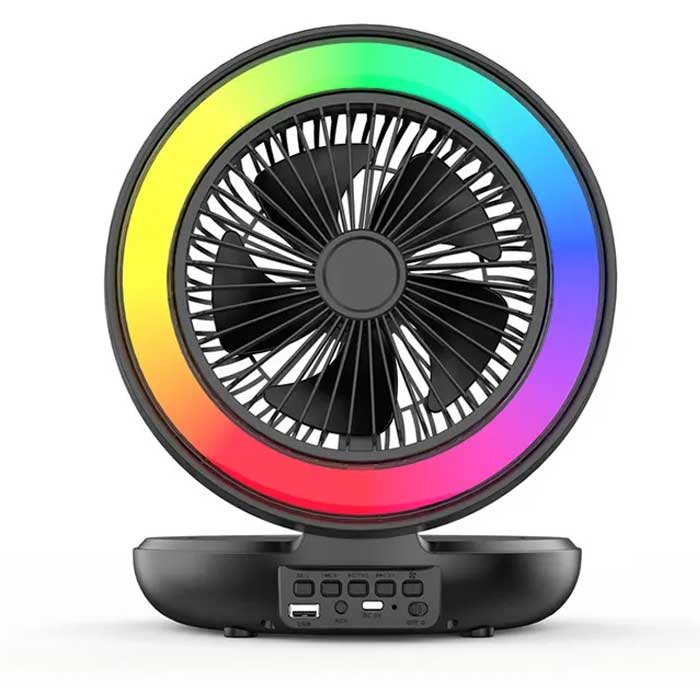 מאוורר נטען עם תאורה ורמקול בלוטוס