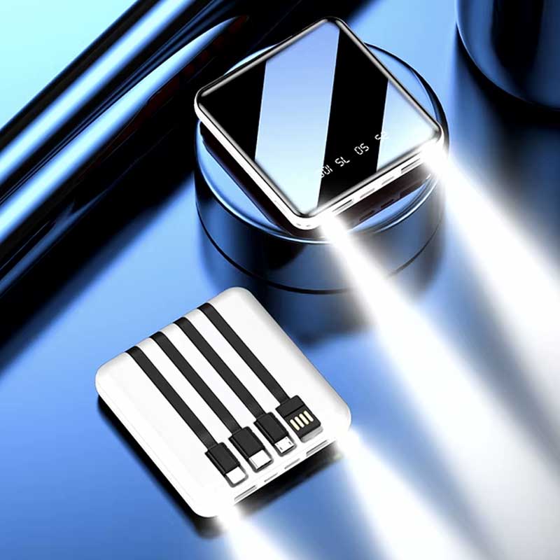 מטען נייד 20,000mAh עם כבלים מובנים ופנס