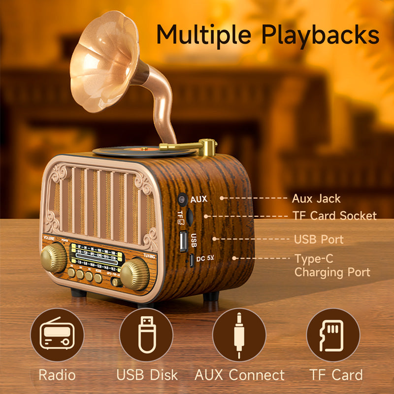 רמקול רטרו דמוי פטיפון MD-1318BT